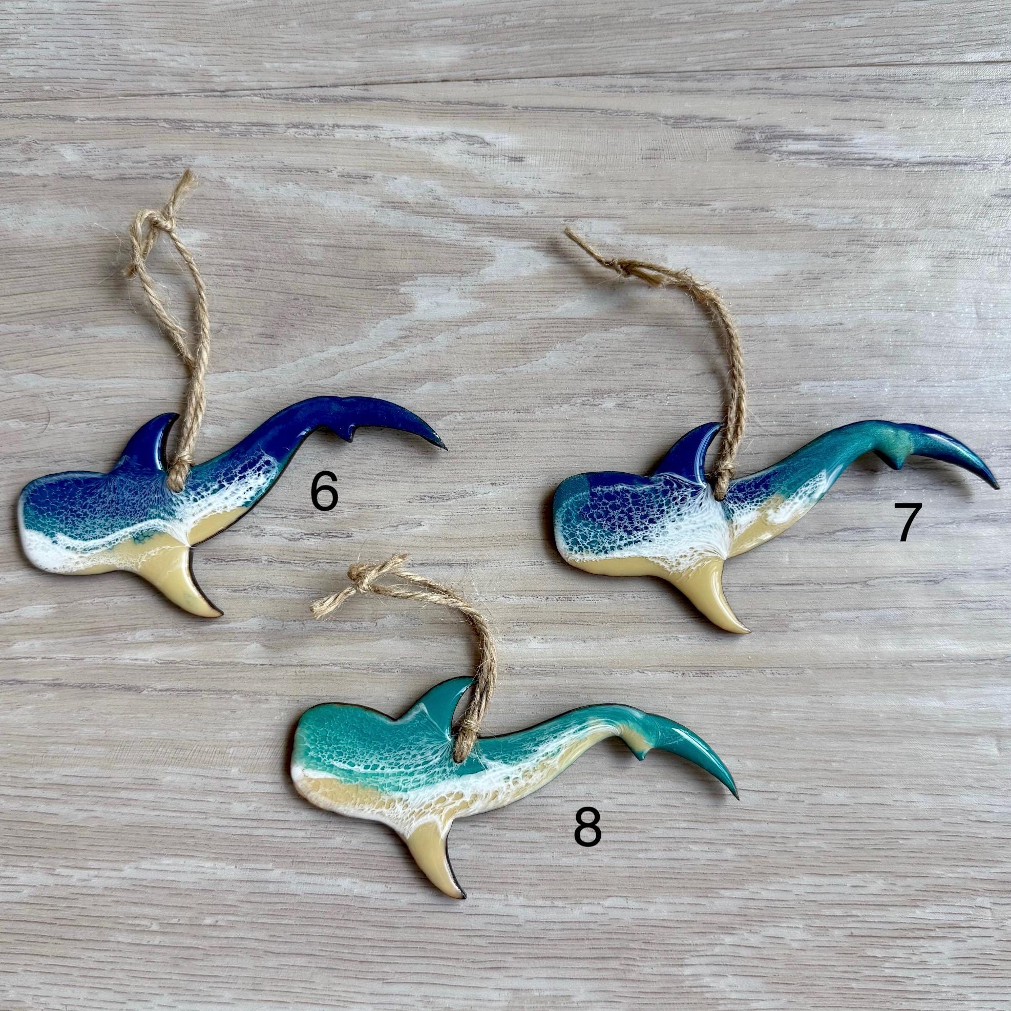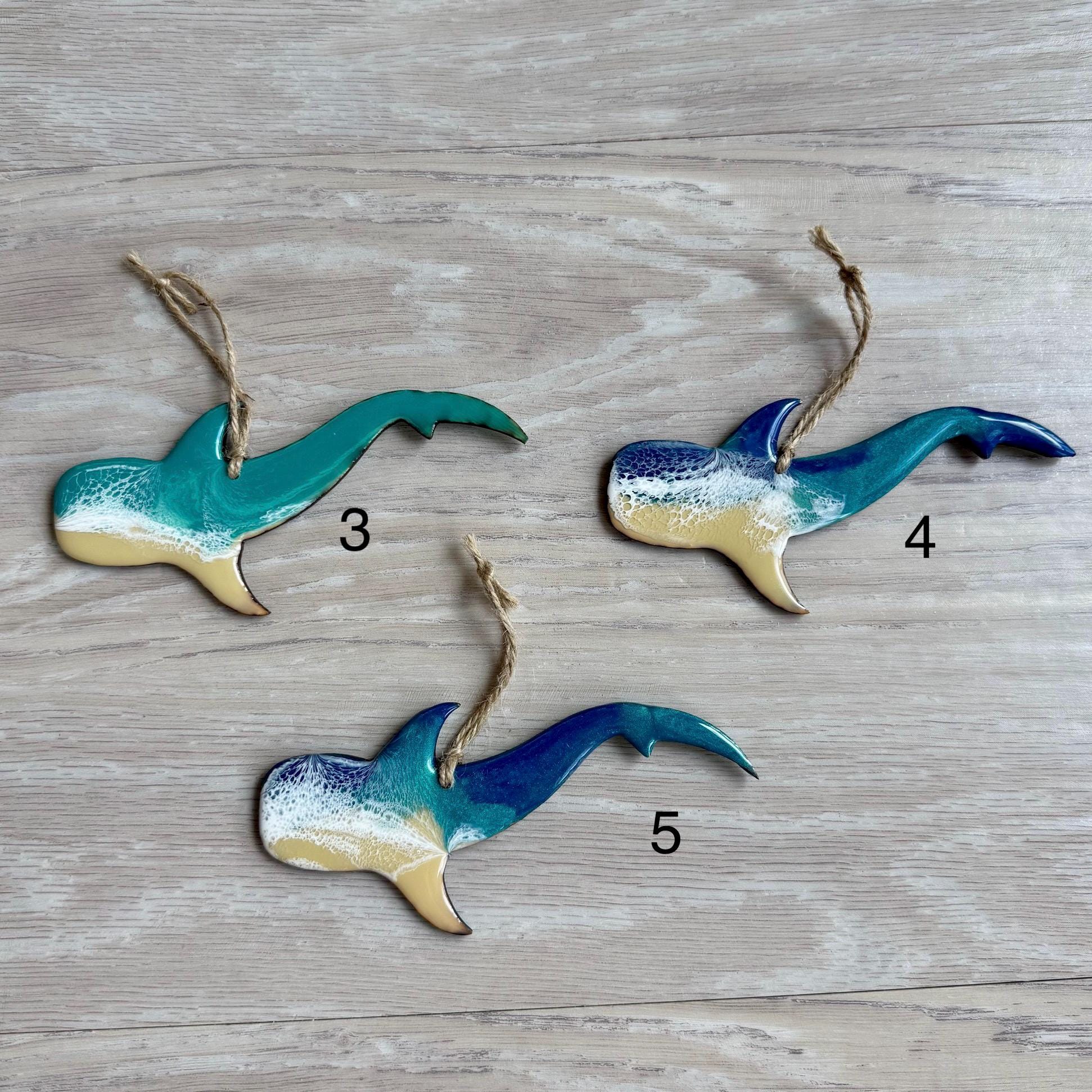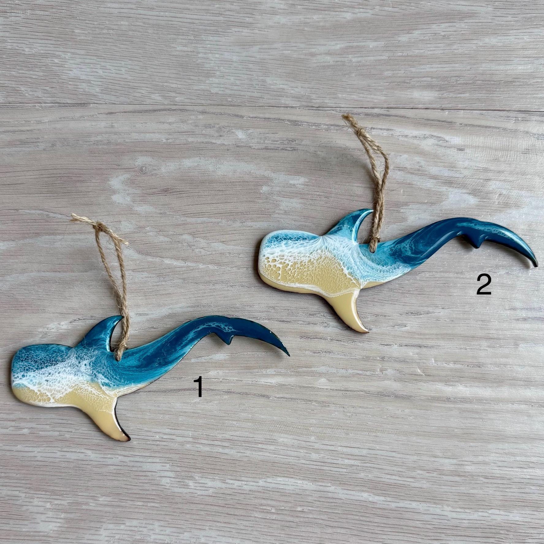 Multiple layers of resin are poured onto a laser cut plywood whale shark.
