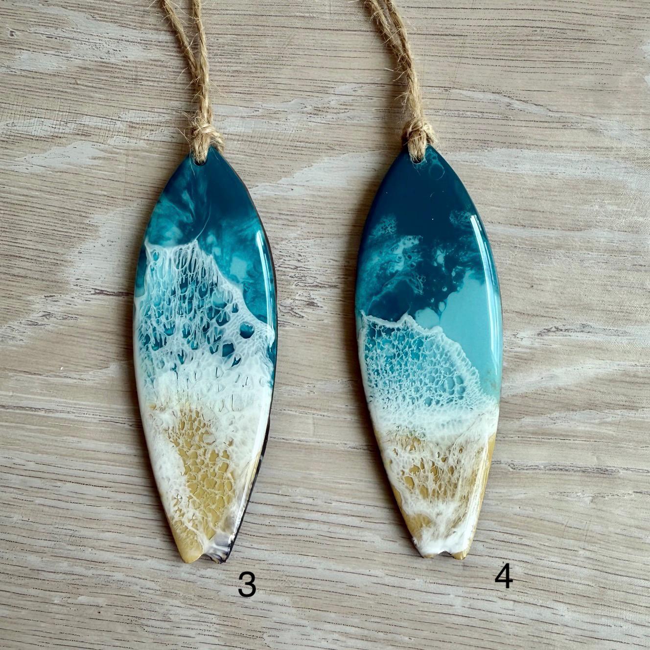 Multiple layers of resin are poured onto laser cut plywood surfboards.